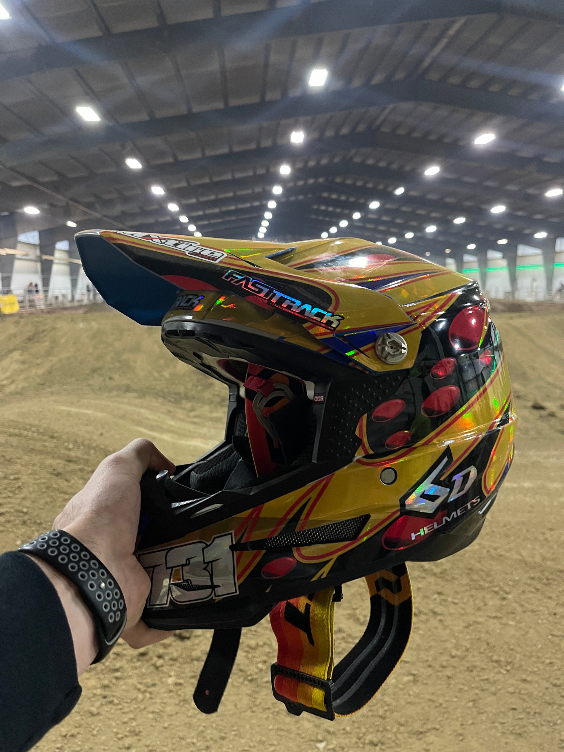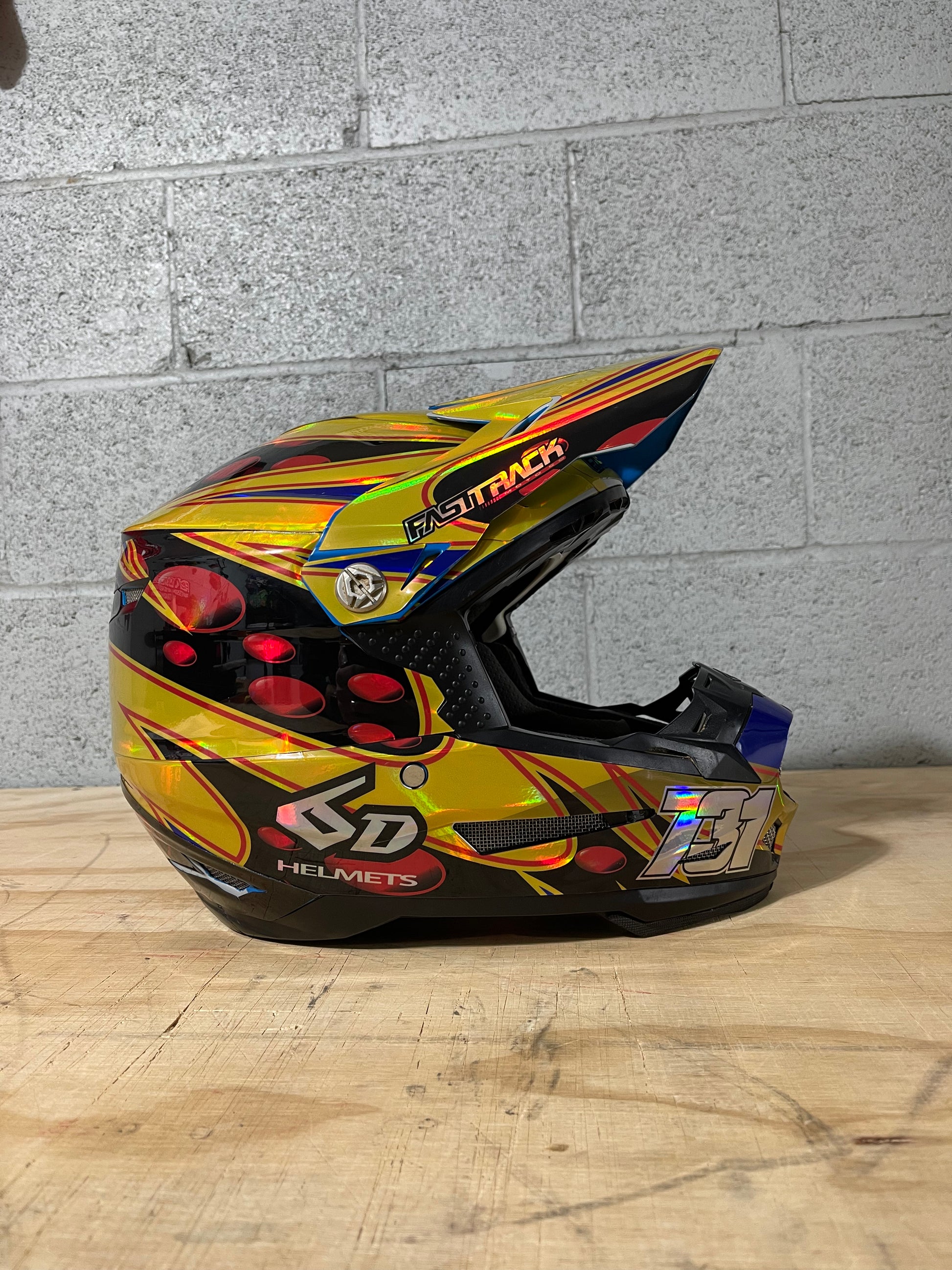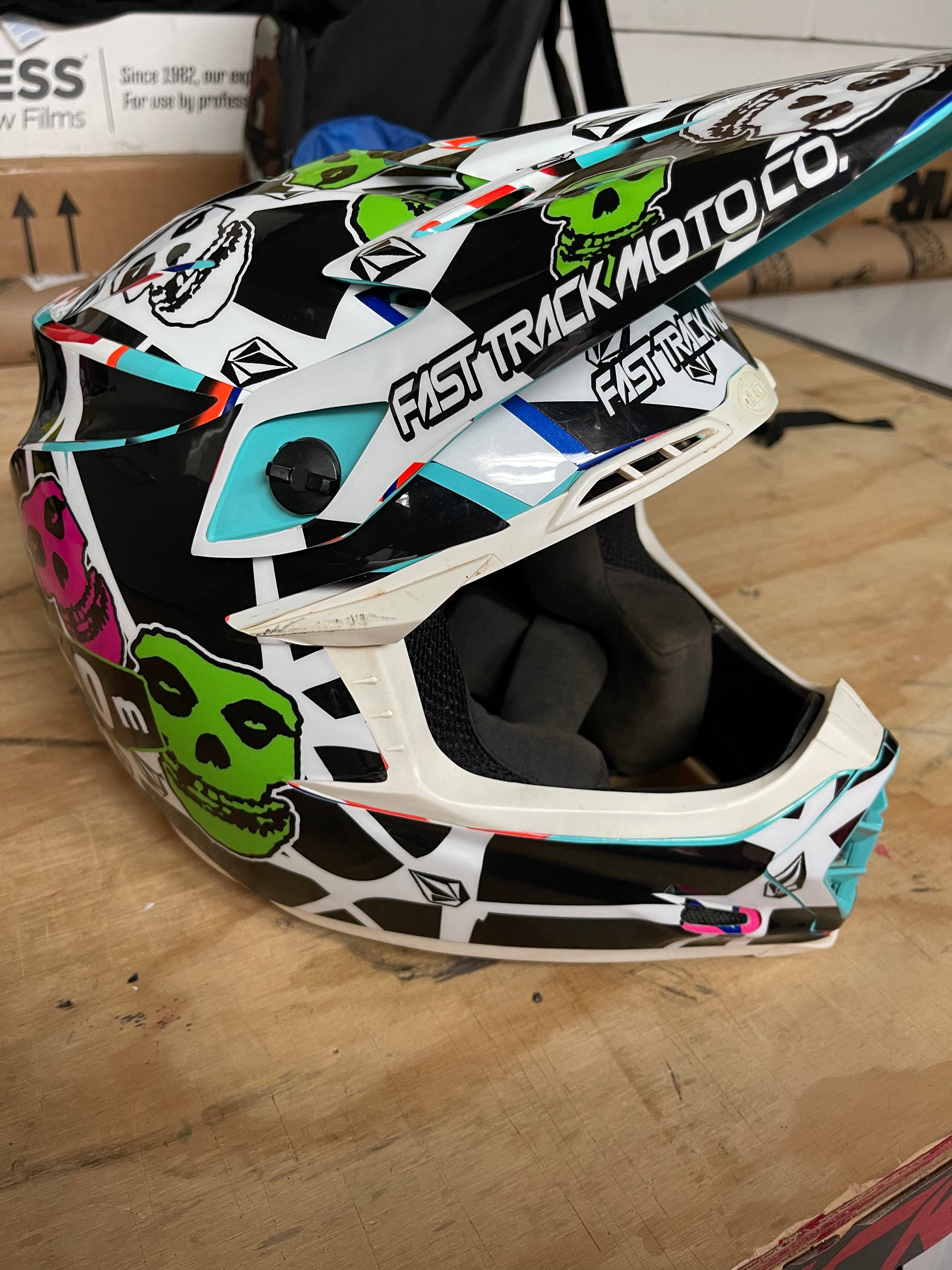 Please fill in all required information. Our helmet wraps are made from the same material as our bike graphics. They are made with a template so its easy to install and look great! They do not cover 100% of the helmet, so they will look best on black helmets.
