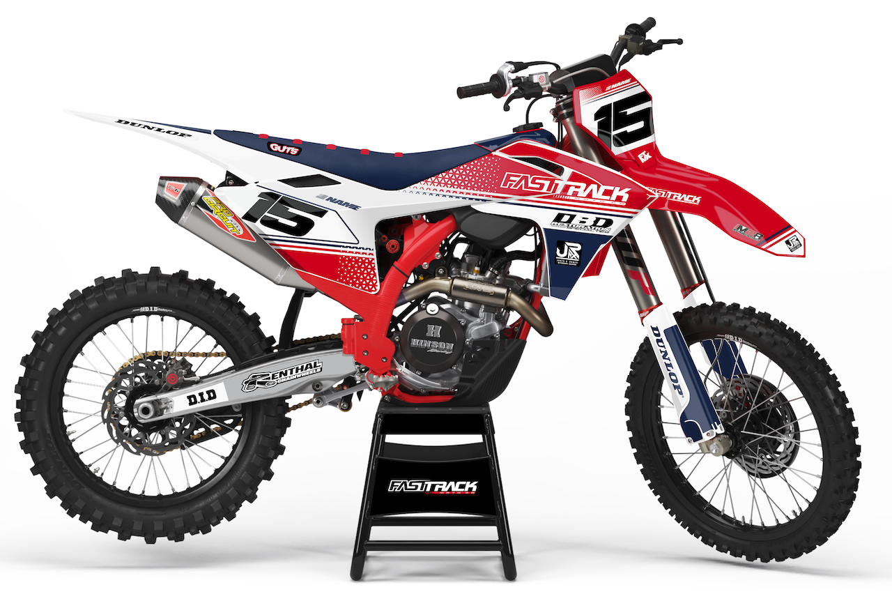 Each semi-custom kit includes decals for the radiator shrouds, front and rear fenders, all number plates, air box, lower fork guards and swing arm.