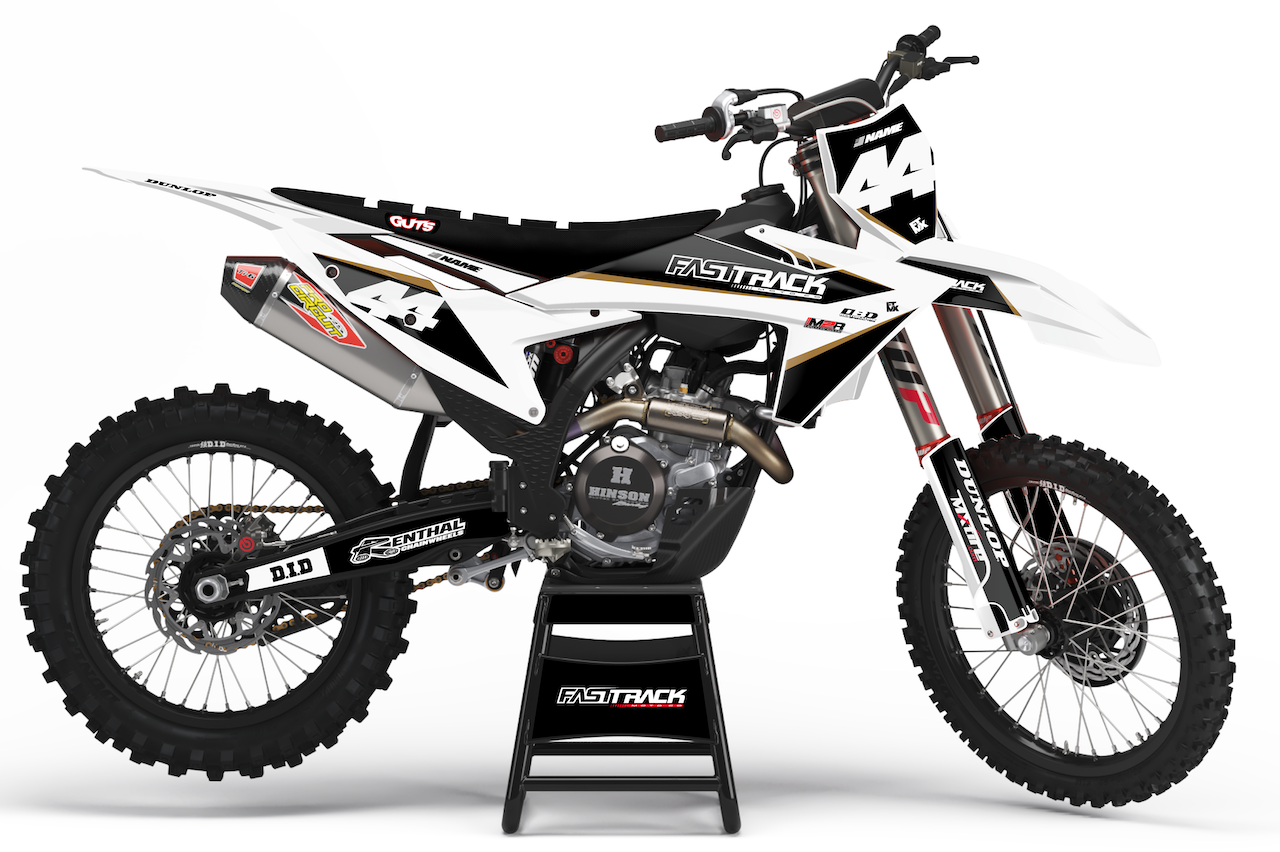 Each semi-custom kit includes decals for the radiator shrouds, front and rear fenders, all number plates, air box, lower fork guards and swing arm.