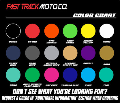 Each semi-custom kit includes decals for the radiator shrouds, front and rear fenders, all number plates, air box, lower fork guards and swing arm.